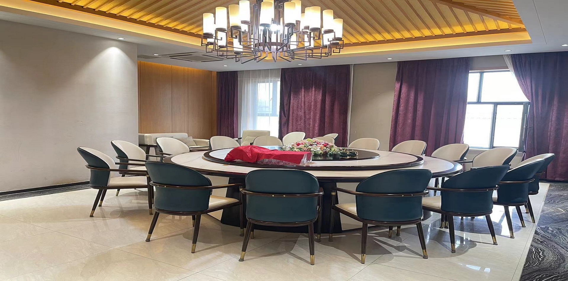 欣阗酒店配套酒店一栋;其中一楼宴会大厅可容纳140人同时就餐,二楼餐饮包厢10间(大包厢可容纳20人,小包厢可容纳8人)。
